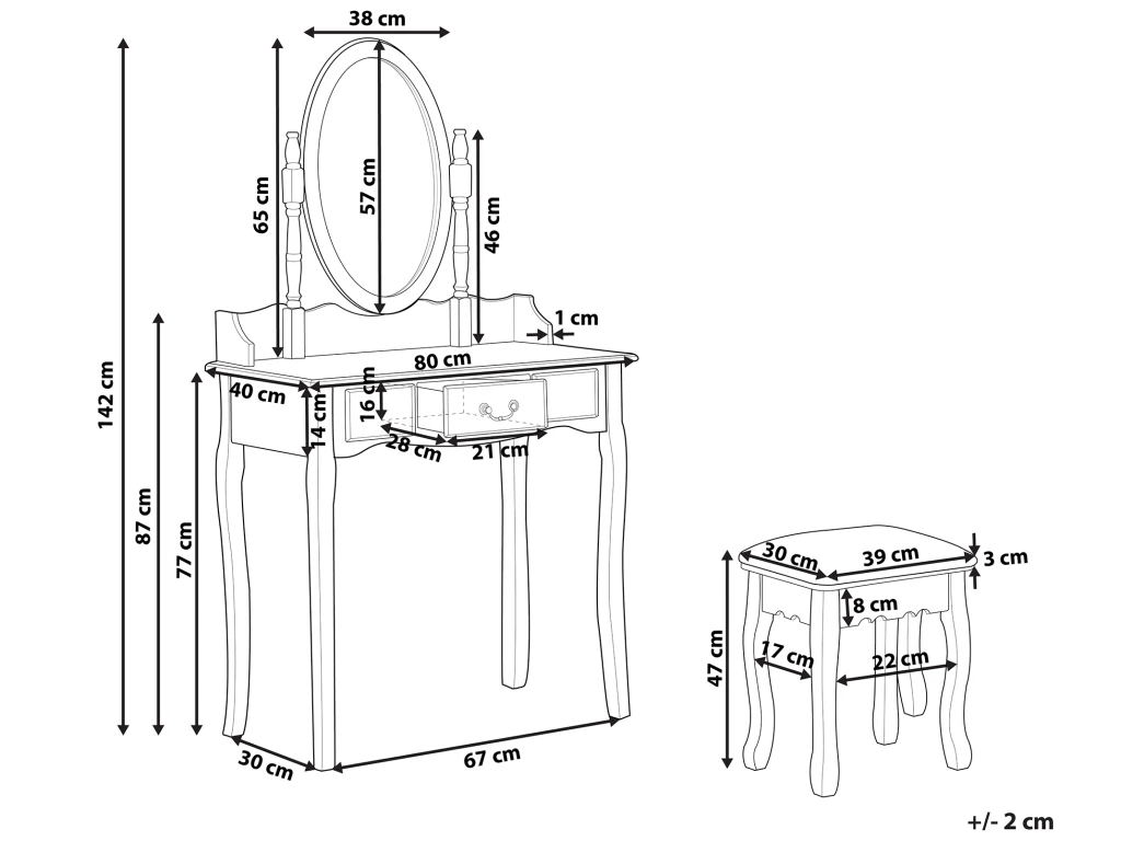 L`offre inclue: 1 x Tabouret, 1 x Coiffeuse