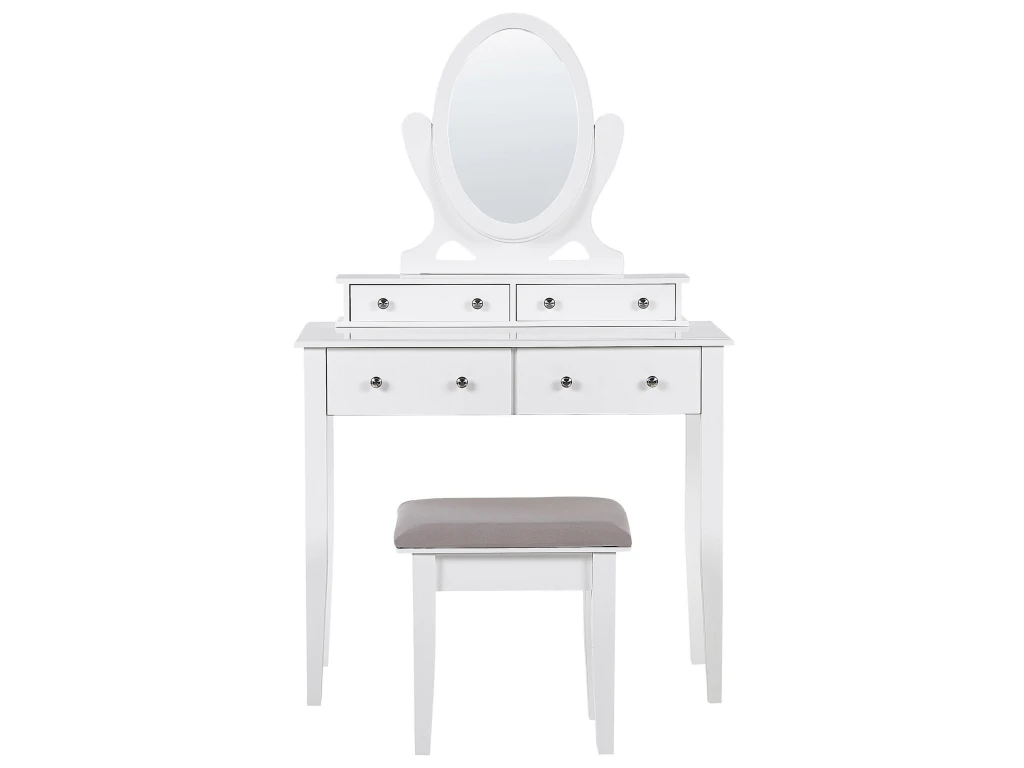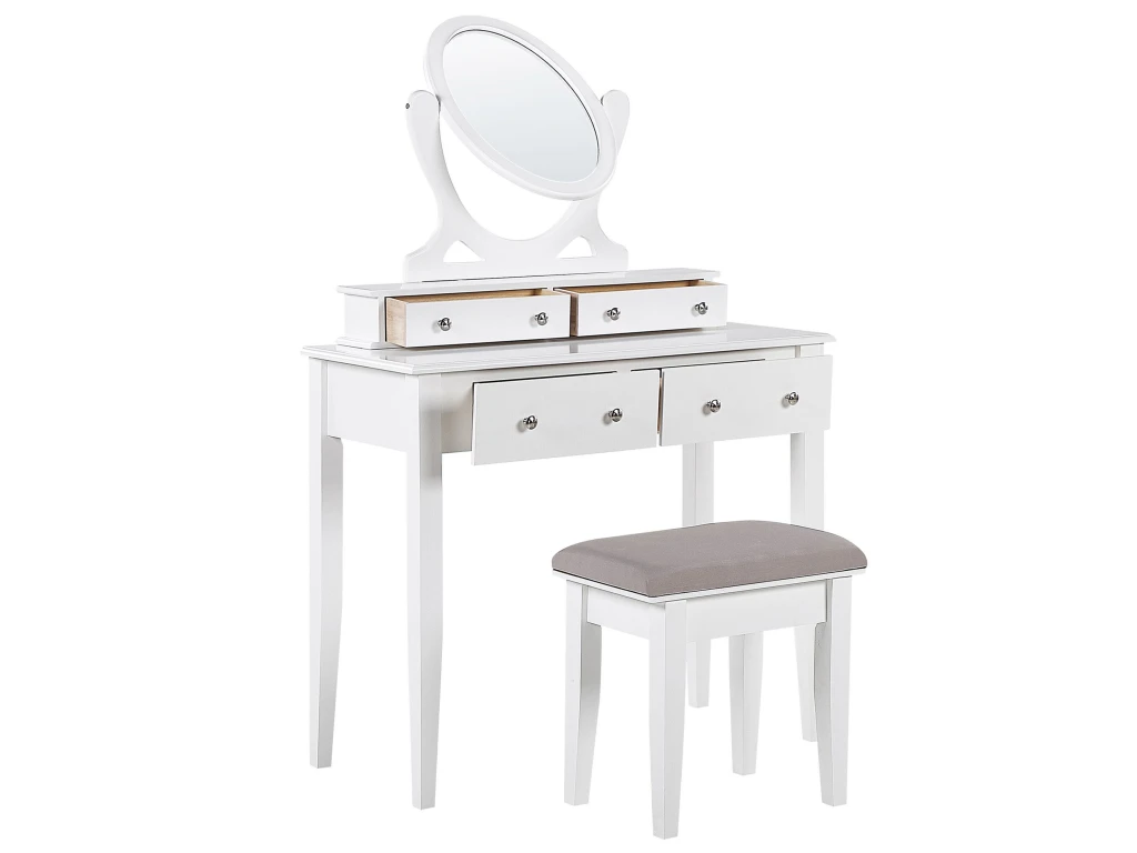 Caractéristiques clés: Grand miroir rotatif, un tabouret confortable inclus , Tiroirs pratiques et spacieux, Design moderne, Fabrication et fintion irréprochables