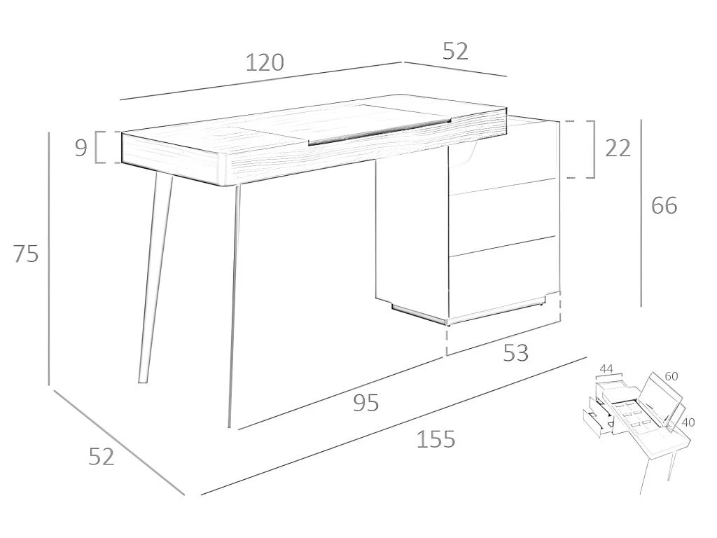 - DIMMENSIONS: Le style minimaliste et moderne de ce bureau apporte de l’espace et une sensation de chaleur Ă l’espace, ainsi que la plus grande fonctionnalitĂ© grĂące Ă son miroir pliant polyvalent, qui en fait un meuble auxiliaire multifonctionnel, parfait pour ĂȘtre utilisĂ© Ă©galement comme bureau. CARACTĂRISTIQUES : GrĂące Ă son bloc-tiroirs latĂ©ral en bois laquĂ© bleu, il vous permet de disposer d’un maximum d’espace pour ranger tous vos objets. Il dispose Ă©galement d’un plateau extractible pour ranger des dĂ©tails tels que les bijoux.