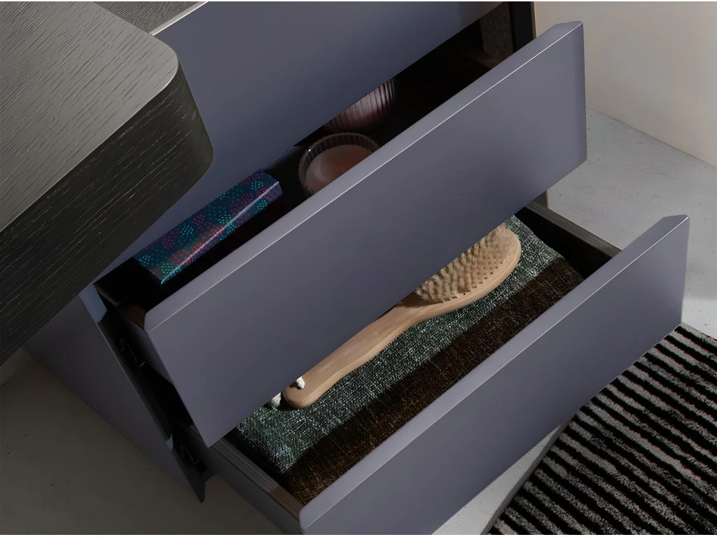 - CARACTĂRISTIQUES:Tiroirs inclus : Oui, 3 tiroirs. SystĂšme d’ouverture des tiroirs latĂ©raux : Articulation digitale latĂ©rale SystĂšme de fermeture des tiroirs latĂ©raux : Soft-closing SystĂšme d’ouverture et de fermeture du miroir : prise par le doigt MĂ©canisme des coulisses des tiroirs : coulisses mĂ©talliques Espace de rangement inclus : Oui, un plateau coulissant. Portes incluses : Non.
