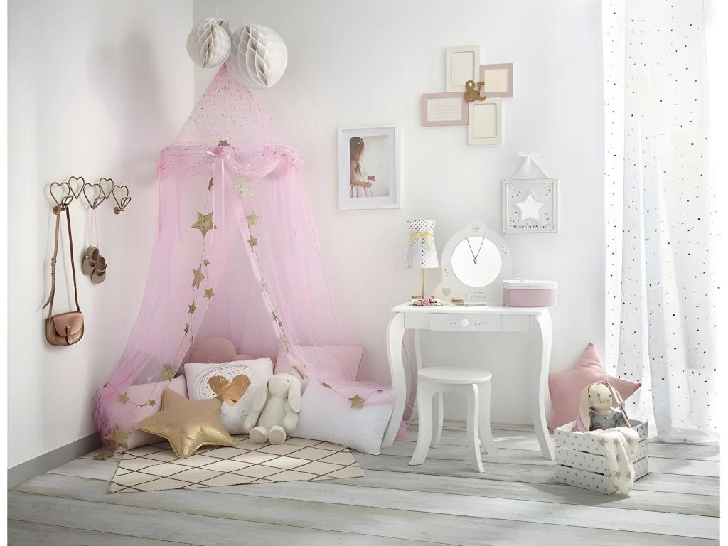 Ensemble De Coiffeuse Et Tabouret 100 X 40 X 146 Cm Rose 02_0006377