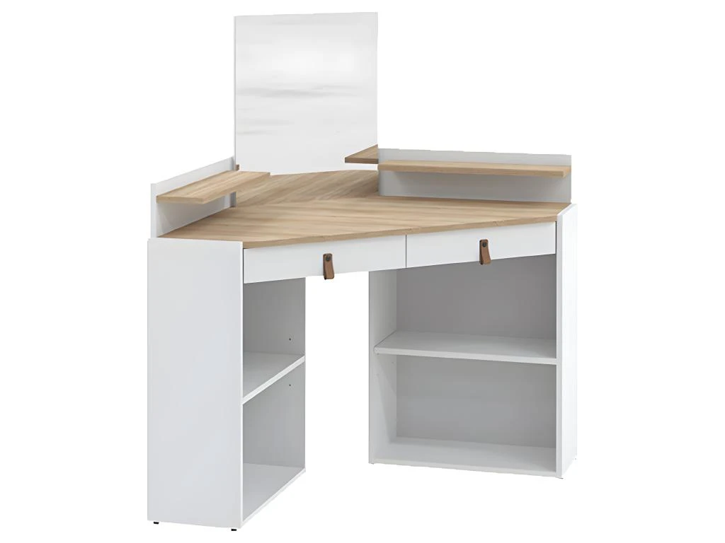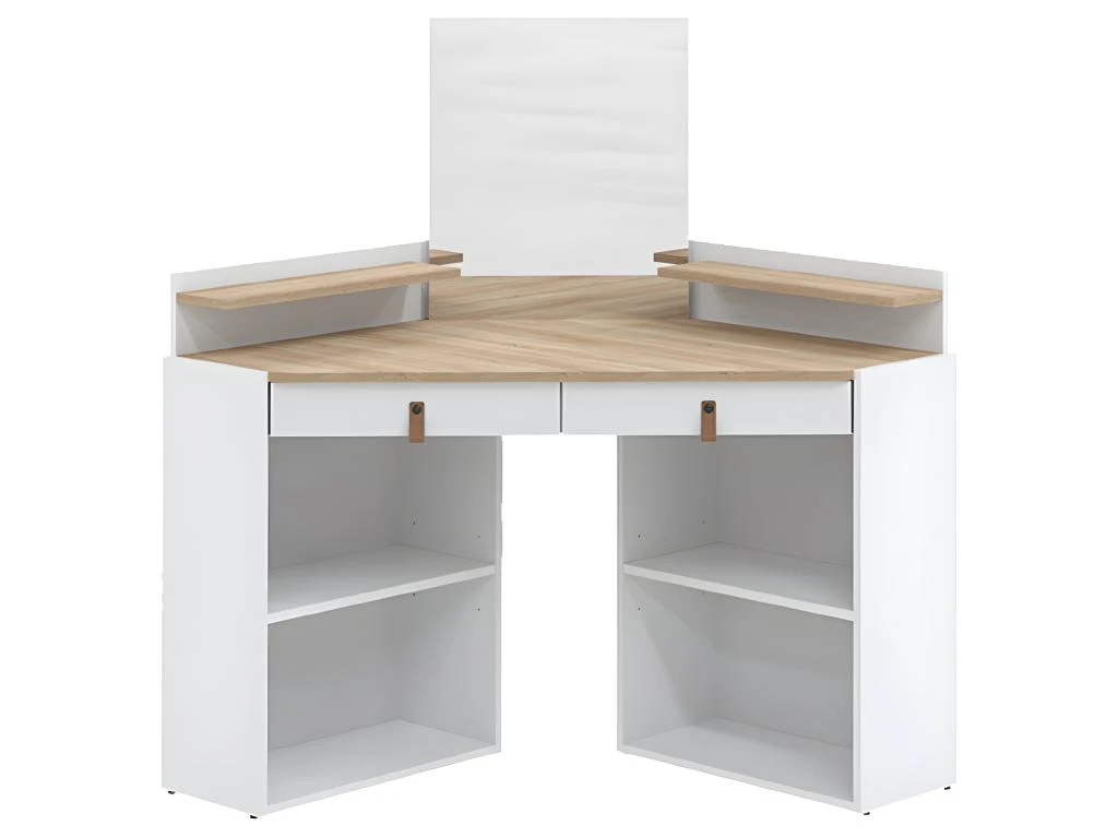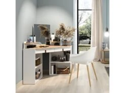 La coiffeuse d’angle GLOSS prend place dans un coin de votre chambre pour vous faire bĂ©nĂ©ficier d’un meuble discret et fonctionnel. Ses grandes niches et ses 2 tiroirs garantissent un espace spacieux pour tous vos produits de beautĂ©. Son miroir intĂ©grĂ© de 54.3 cm vous permet un confort inĂ©galĂ©.