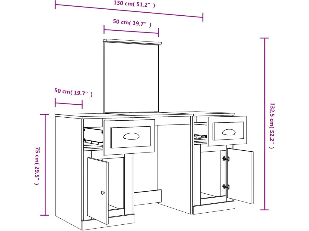 Dimensions totales : 130 x 50 x 132,5 cm (L x l x H)