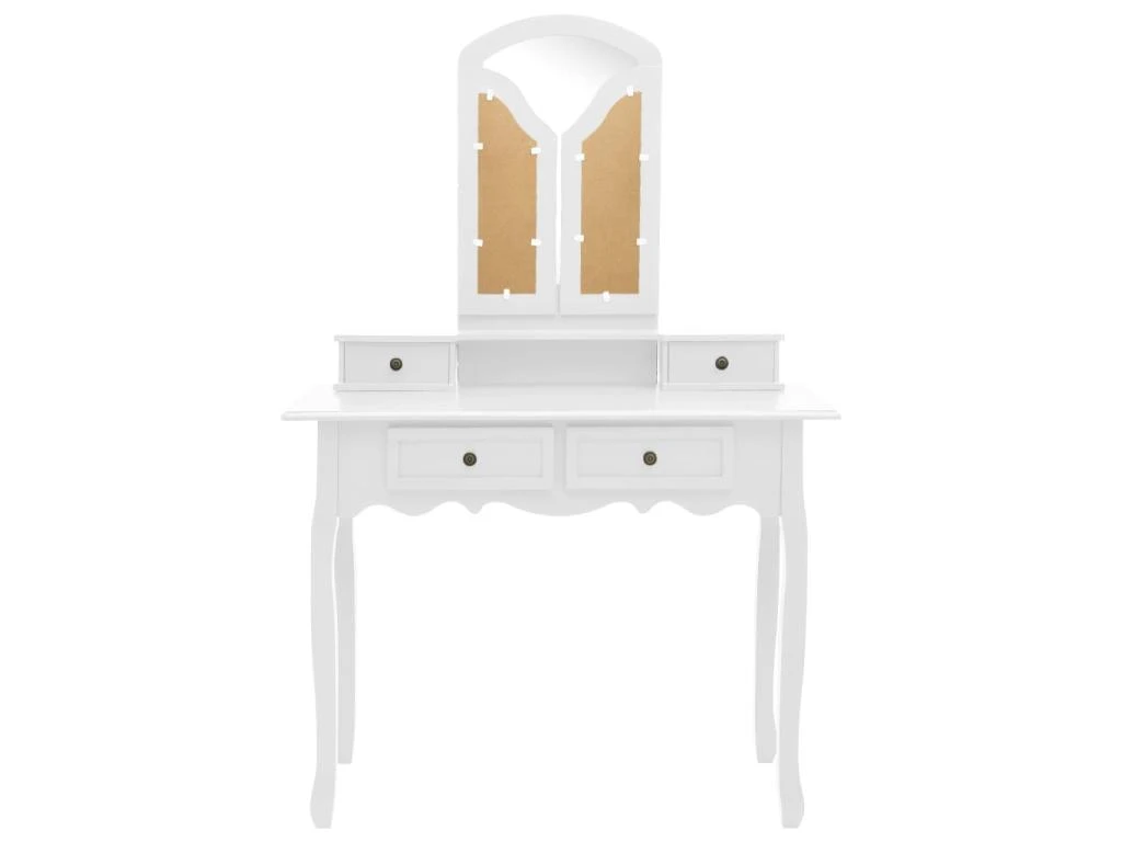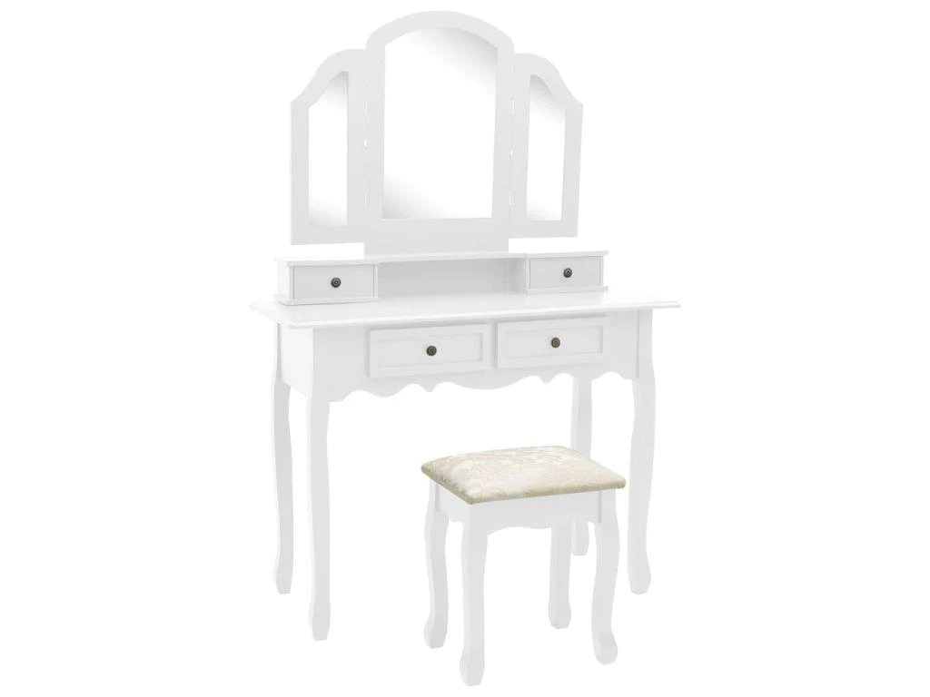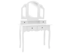 Cet ensemble de table et de tabouret cosmĂ©tique attire certainement le regard, dans n’importe piĂšce.