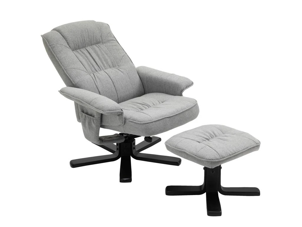 Fauteuil De Relaxation CHARLY Repose-pieds Siège Pivotant Dossier Inclinable Assise Rembourrée Relax, En Tissu Gris Et Pieds Noirs