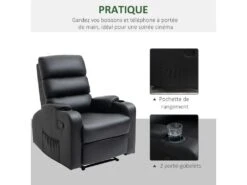 – Poche latérale de rangement très pratique pour y déposer votre téléphone, votre programme TV, vos télécommandes