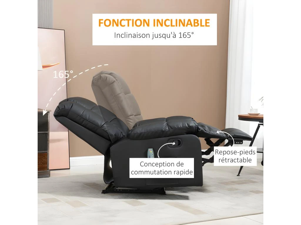 – Fauteuil de massage relaxation dotĂ© de 8 points de massage par vibration, dont 4 points pour le dos, 2 points au niveau des cuisses et 2 points au niveau des mollets