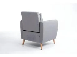 Fauteuil rembourré avec accoudoir et coussin en tissu gris