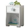 Structure en mdf et pin massif laqué blanc. Tiroir avec Système Soft-Close.