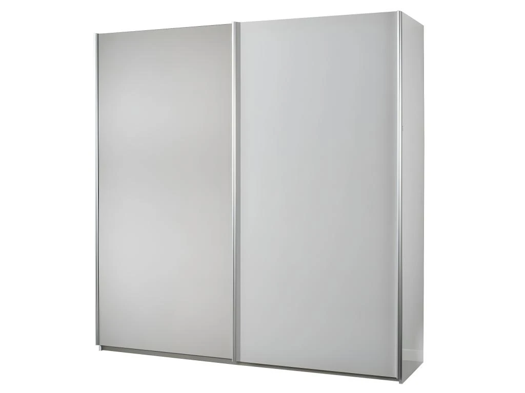 Structure en panneaux de particules ép. 18mm. Finition laqué brillant coloris blanc. Portes coulissantes. Miroir en façade. Intérieur : 2 penderies et 2 grandes étagÚres.
