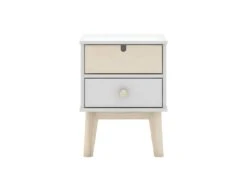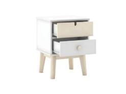 Chevet 2 Tiroirs en MDF et Pin Coloris Blanc et Naturel de la gamme Kaina.