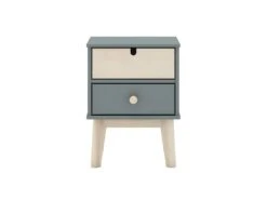 Chevet 2 Tiroirs en MDF et Pin Coloris Gris Vert et Naturel de la gamme Kaina.