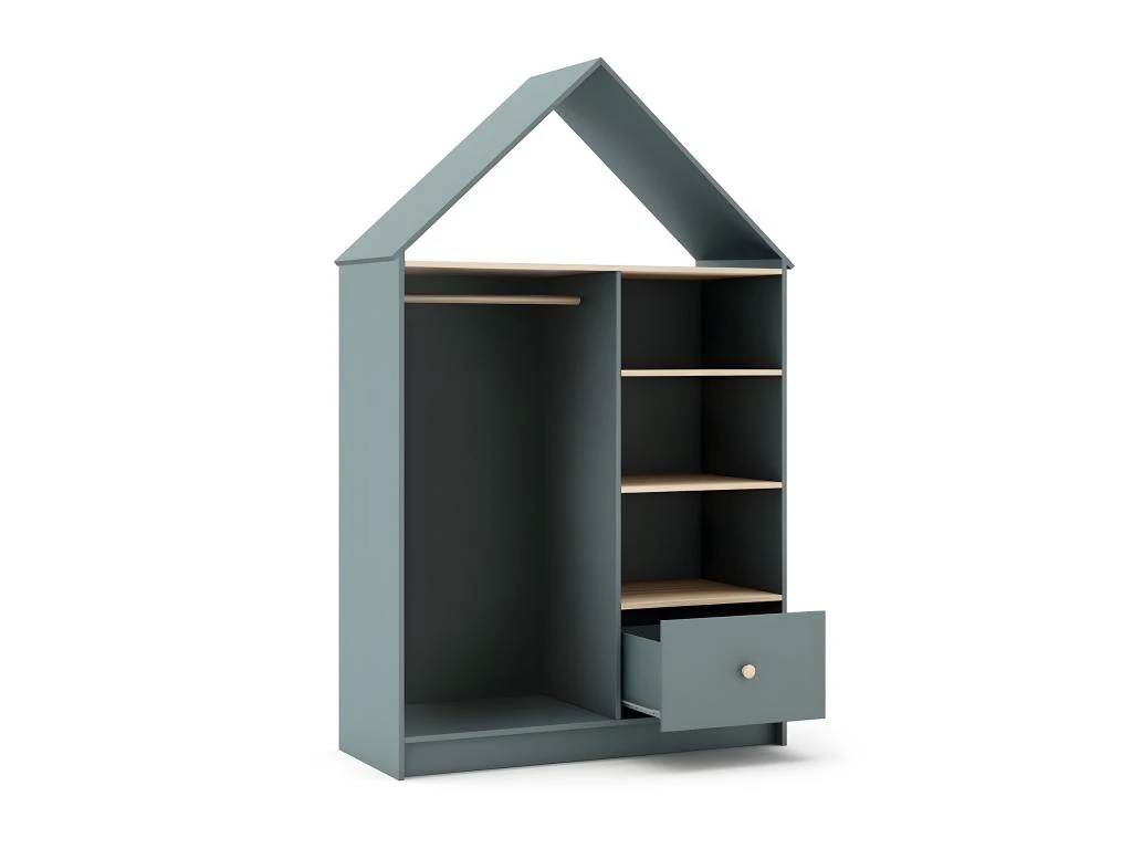 Dressing Cabane Enfant MDF et Pin Coloris Gris Vert et Naturel de la gamme Kaina.
