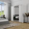 Structure en mdf et pin massif. Coté double avec penderie + 2 étagÚres, colonne simple avec 4 étagÚres. Portes avec SystÚme Soft-Close.