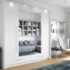 Structure en panneaux de particules, dĂ©cor effet bois grisĂ©. Miroirs sur chaque portes inclus. Portes Ă©quipĂ©es du systĂšme Softclosing.Â