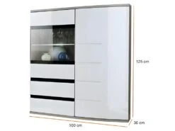 Vaisselier 1 Porte Battante 2 Tiroirs Chêne/Métal – SEATTLE – L 90 X L 40 X H 135 Cm