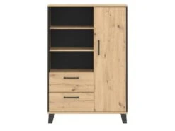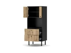 Vaisselier Industriel SPEBO 2 Tiroirs, 2 Portes Et 1 Niche, Coloris Noir Mat Et Chêne Wotan