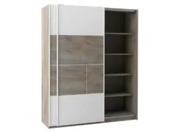 MADE IN FRANCE : Armoire Effet Bois 2 Portes Coulissantes Ă Frein de la gamme Nino Light.