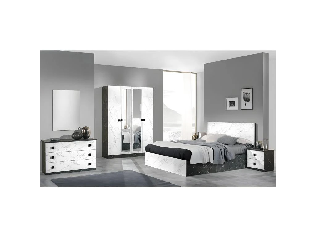 Osez l’originalitĂ© dans votre chambre avec notre gamme Mozayik, sa finition brillante et son motif marbrĂ© noir et blanc. L’armoire est Ă©quipĂ©e d’une penderie, et dispose de tablettes modulables selon vos besoins.