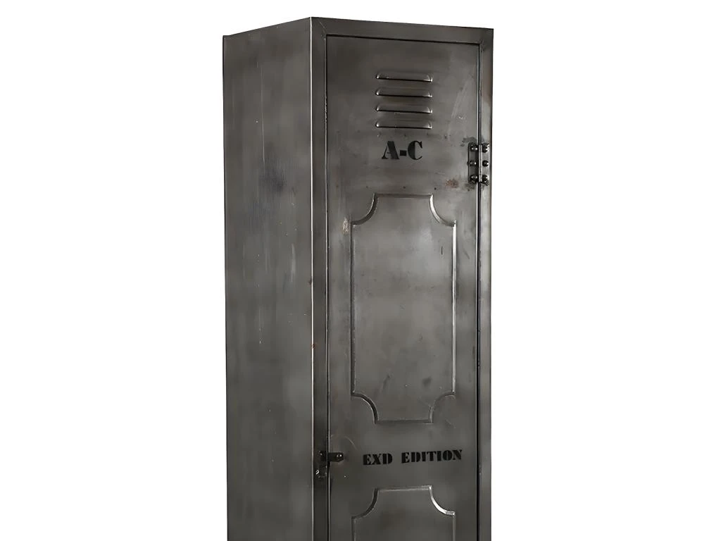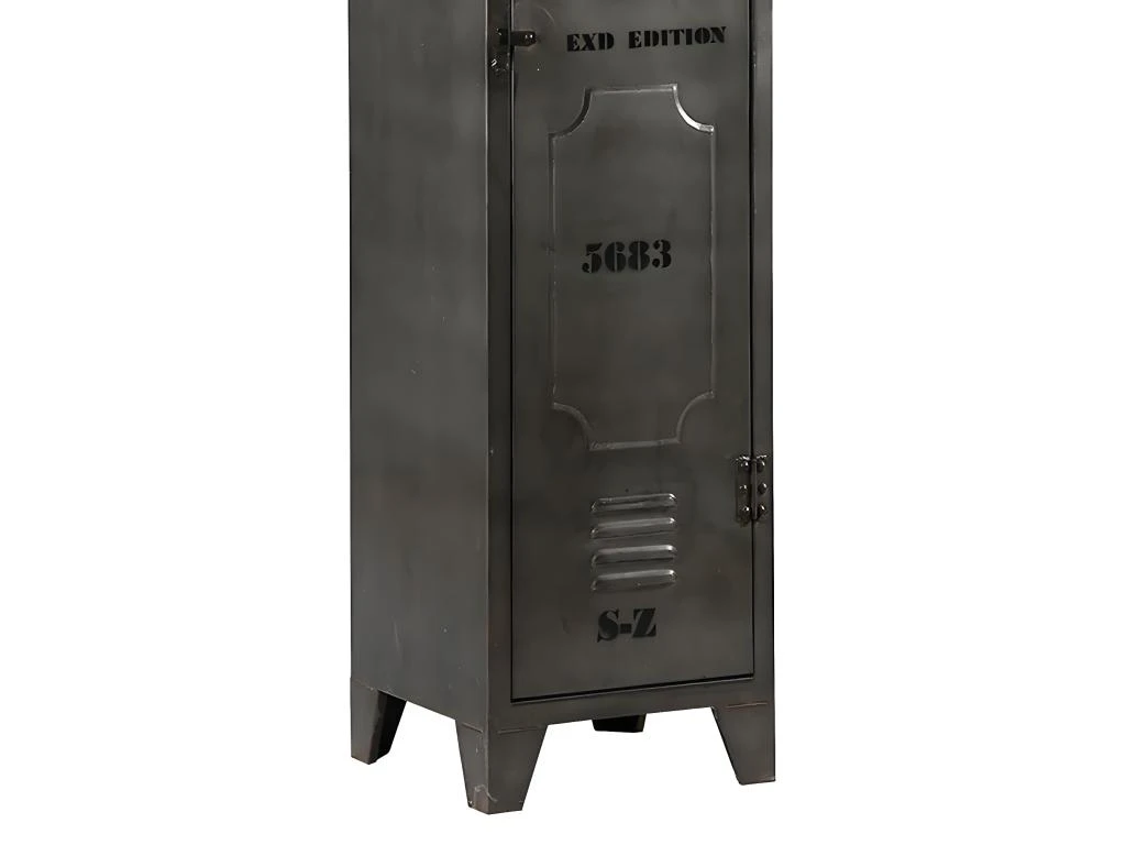 IdĂ©al comme meuble d’entrĂ©e ou dans une chambre au design industriel, ce casier dissimule 4 Ă©tagères fixe derrière sa porte, pour pouvoir entreposer un maximum d’affaires. Structure en acier, finition vernis nitro-cellulosique et peinture mĂ©tallique.