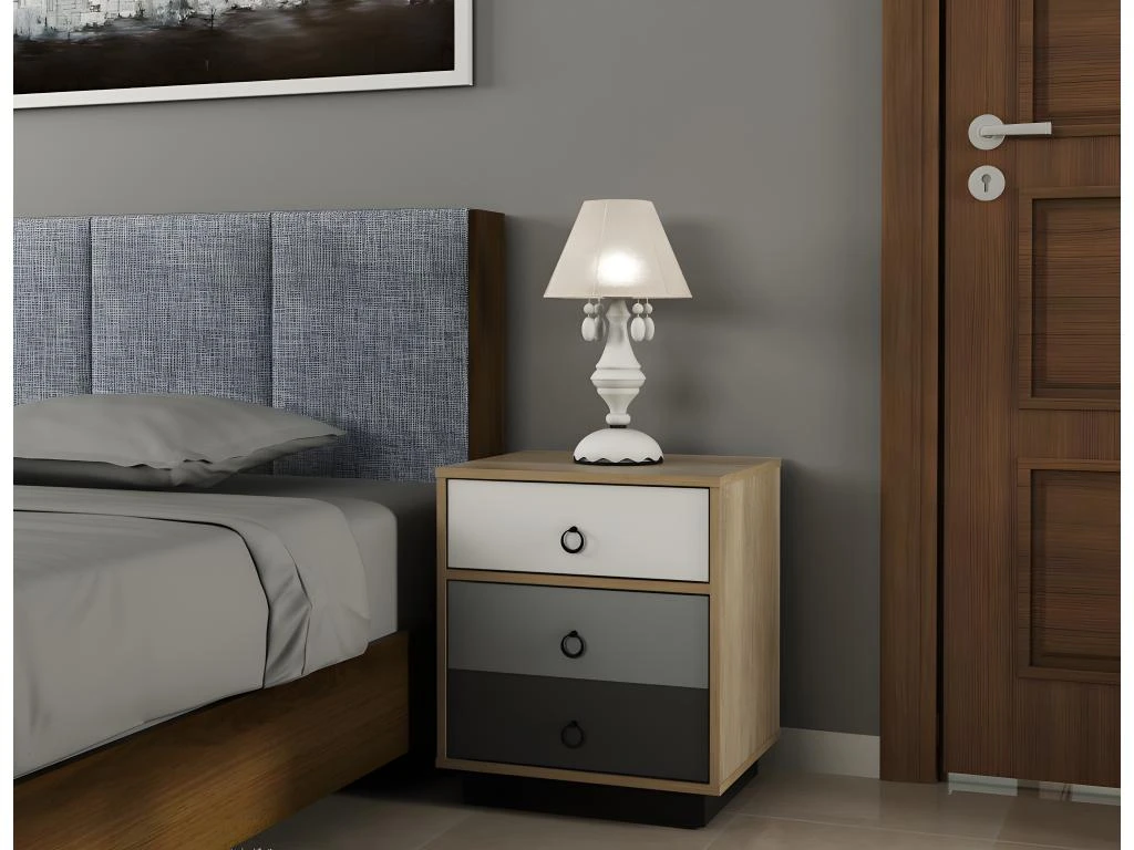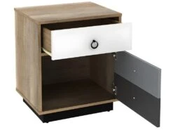 TrĂšs ingĂ©nieuse, la porte de cette table de chevet donne l’illusion de disposer de multiples tiroirs.Â