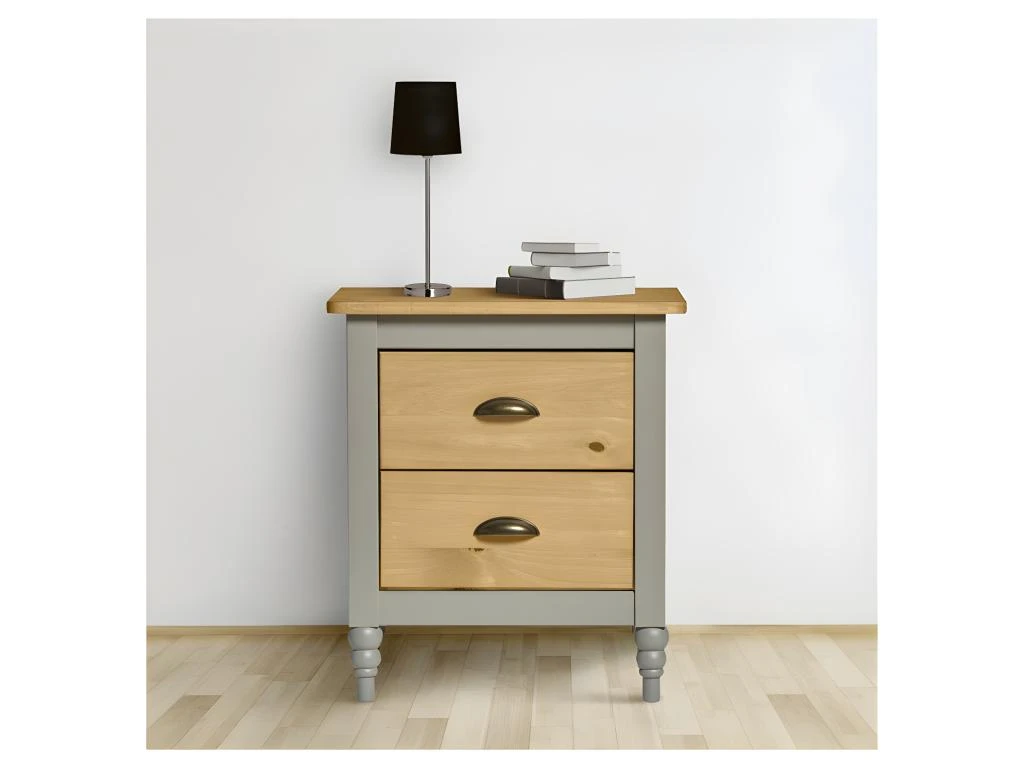 Apportez la touche finale à la déco de votre chambre avec cette table de chevet inspirée du mobilier classique et mise en lumière grâce à une peinture gris et un bois de Pin teinte naturelle.