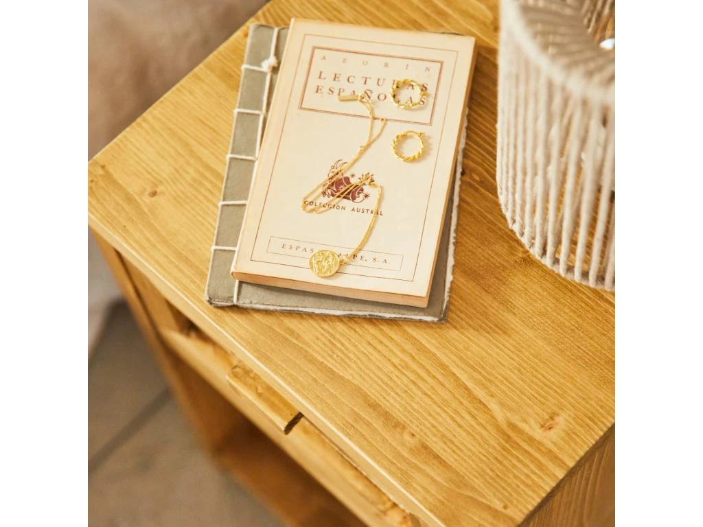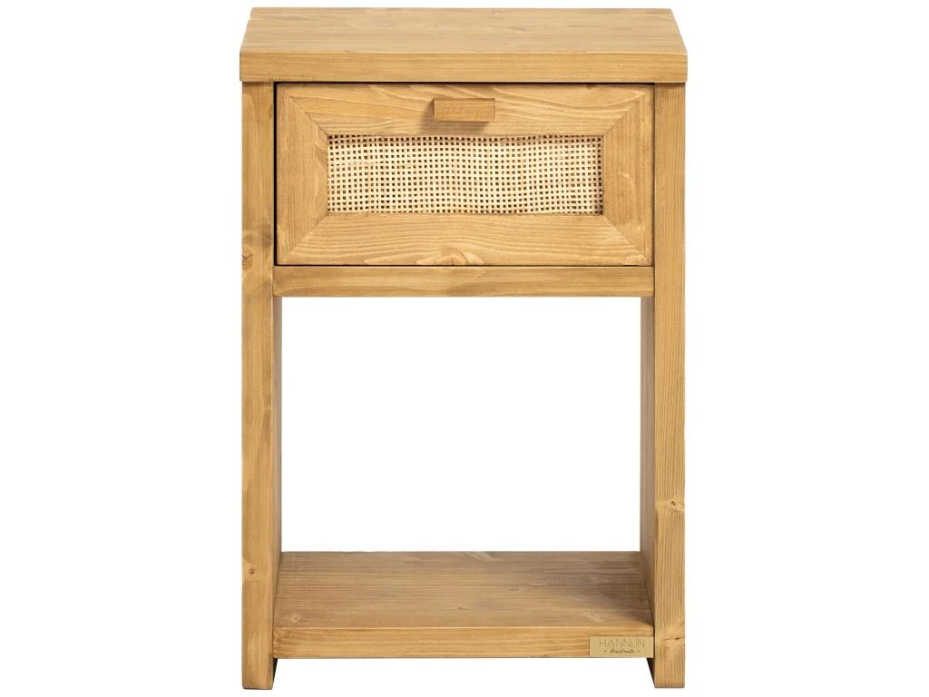 Table De Chevet Avec Etagère En Bois D’épicéa Couleur Naturelle