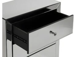 Ce chevet GLACIA, très design, fera sensation dans votre chambre à coucher. Son charme et son effet miroir illuminera votre chambre et lui donnera un effet de grandeur! De plus, doté de ses 3 tiroirs il sera également très pratique pour ranger vos affaires personnelles.