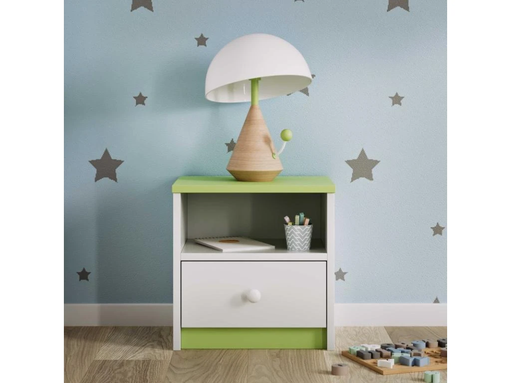 Table Nuit Chevet 1 Tiroir 1 Porte Bois Gris Shabby 71×36,5×30,5
