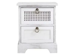 … ne passera pas inaperçue avec son style shabby chic rustique dans votre chambre à coucher. Les 2 tiroirs vous offrent suffisamment d’espace de stockage pour ranger toutes vos affaires personnelles, et vous pourrez placer votre lampe de chevet, réveil et livres sur le plateau supérieur. Ce chevet en bois est marqué par son style à la fois vintage et rétro, de par l’effet vieilli du meuble et le design original des tiroirs et des poignées. Avec sa finition patinée en blanc, il s’accordera parfaitement avec le reste de votre mobilier.