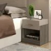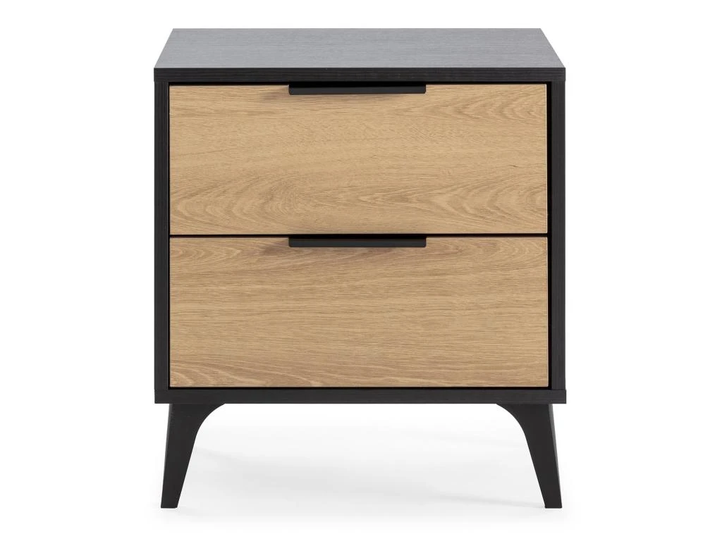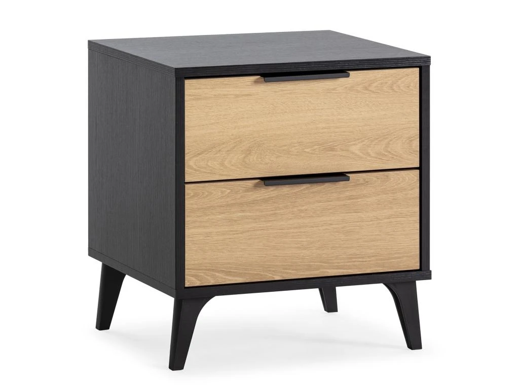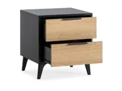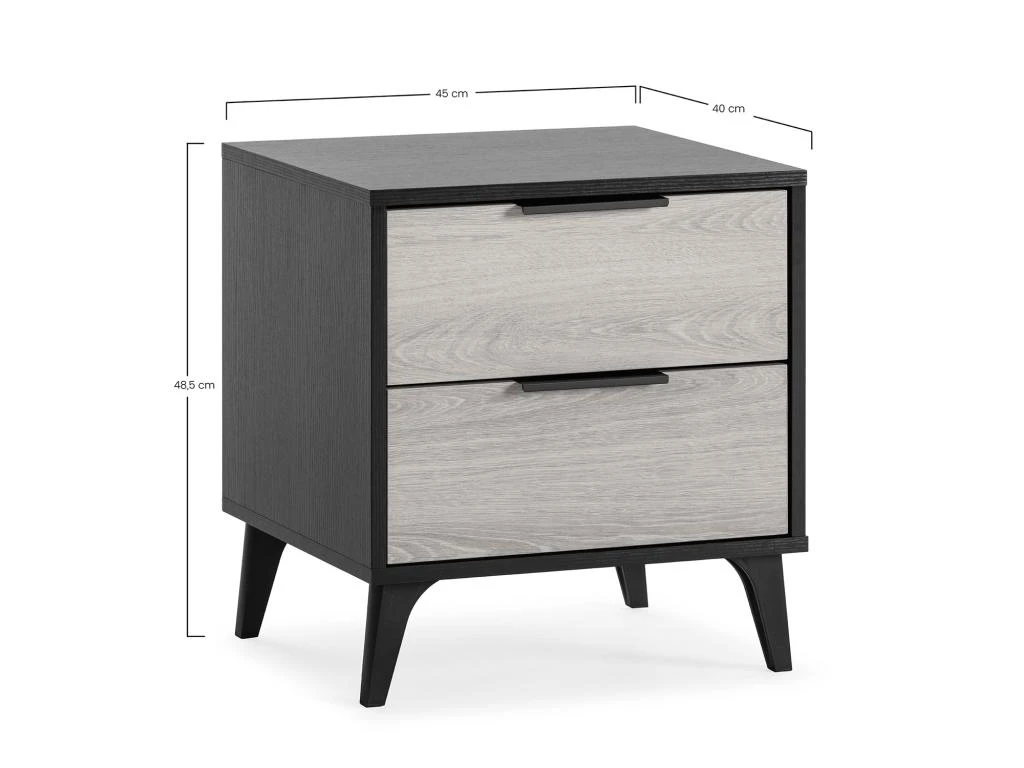 · La table de nuit Kalma est une piĂšce rĂ©alisĂ©e en mĂ©lamine noir et chĂȘne. Une table moderne qui ajoutera beaucoup de style et de personnalitĂ© Ă votre piĂšce en crĂ©ant l’atmosphĂšre idĂ©ale pour votre chambre.