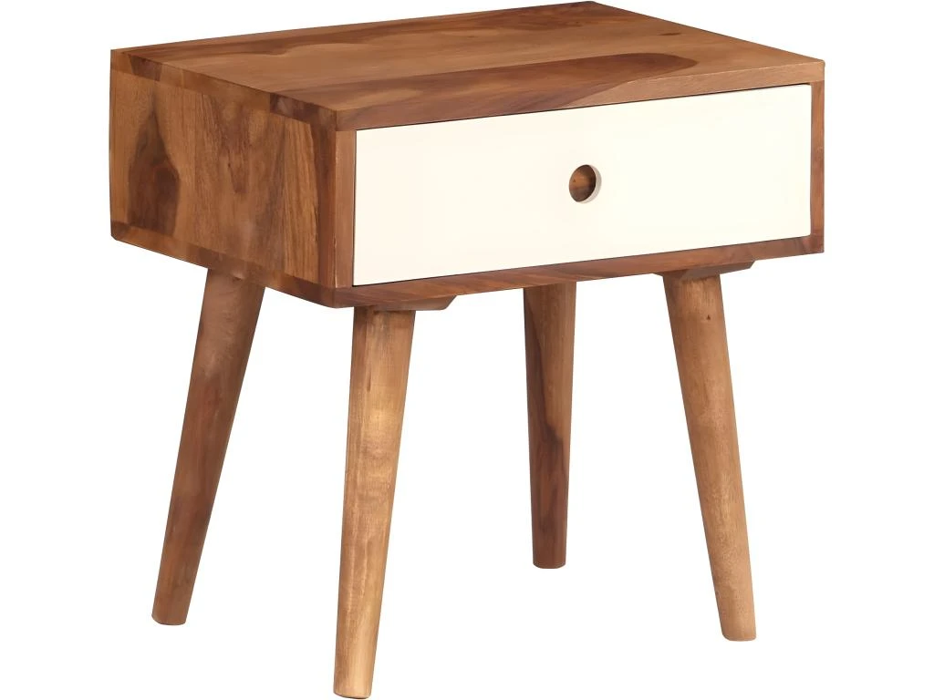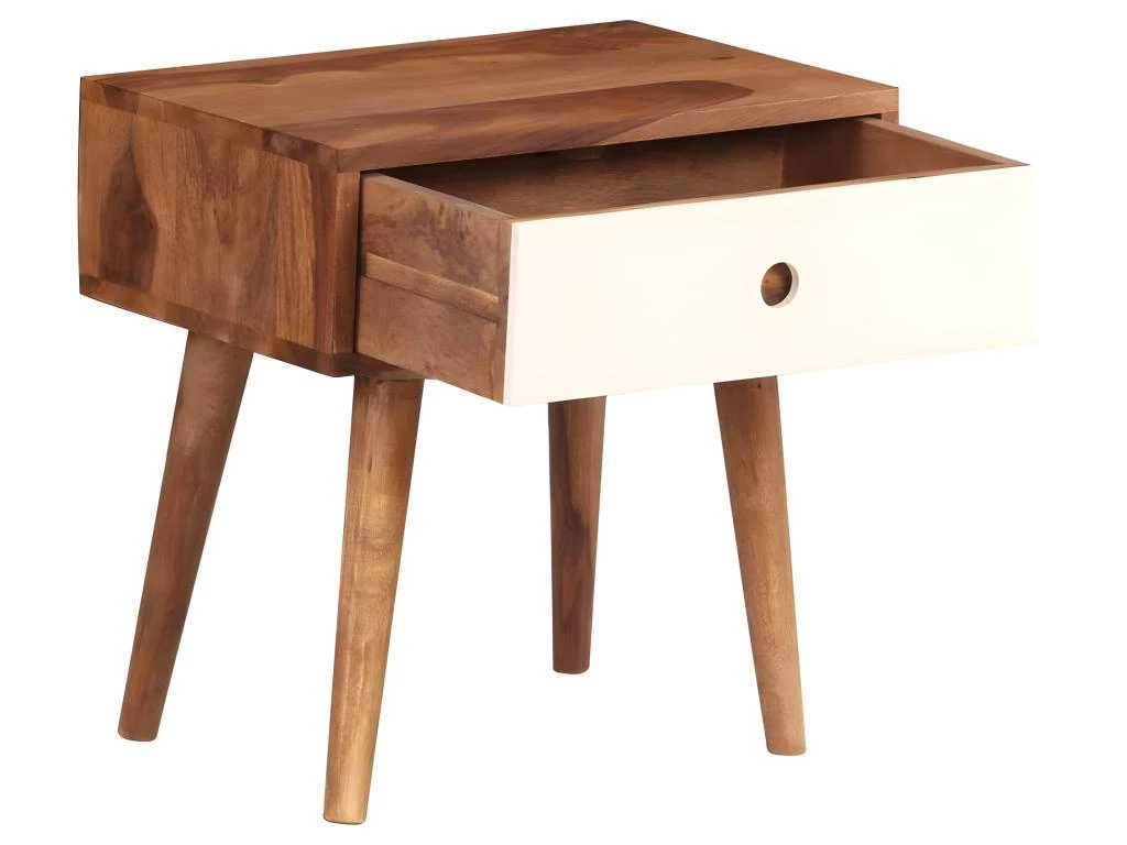 Cette table de chevet en bois solide de Sesham en style moderne est dotée d’un dessus de table stable et sécurisé, non seulement pour placer un réveil, une lampe de lecture, des livres ou d’autres objets, mais également pour afficher des cadres de photo ou d’autres objets de décoration.