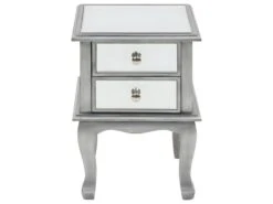 La table de chevet Ă©lĂ©gante est ornĂ©e de verre Ă effet miroir et apporte une touche raffinĂ©e Ă l’aspect gĂ©nĂ©ral.