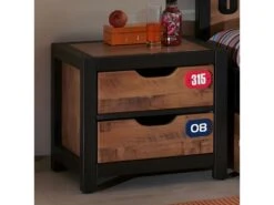 Chevet 2 Tiroirs en Pin Massif avec Motifs de la gamme Tchad.