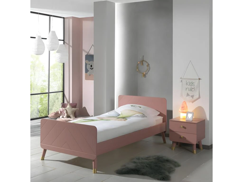 Chevet 2 Tiroirs Rose, pieds et poignées Gold, de la gamme Tiny Pink.