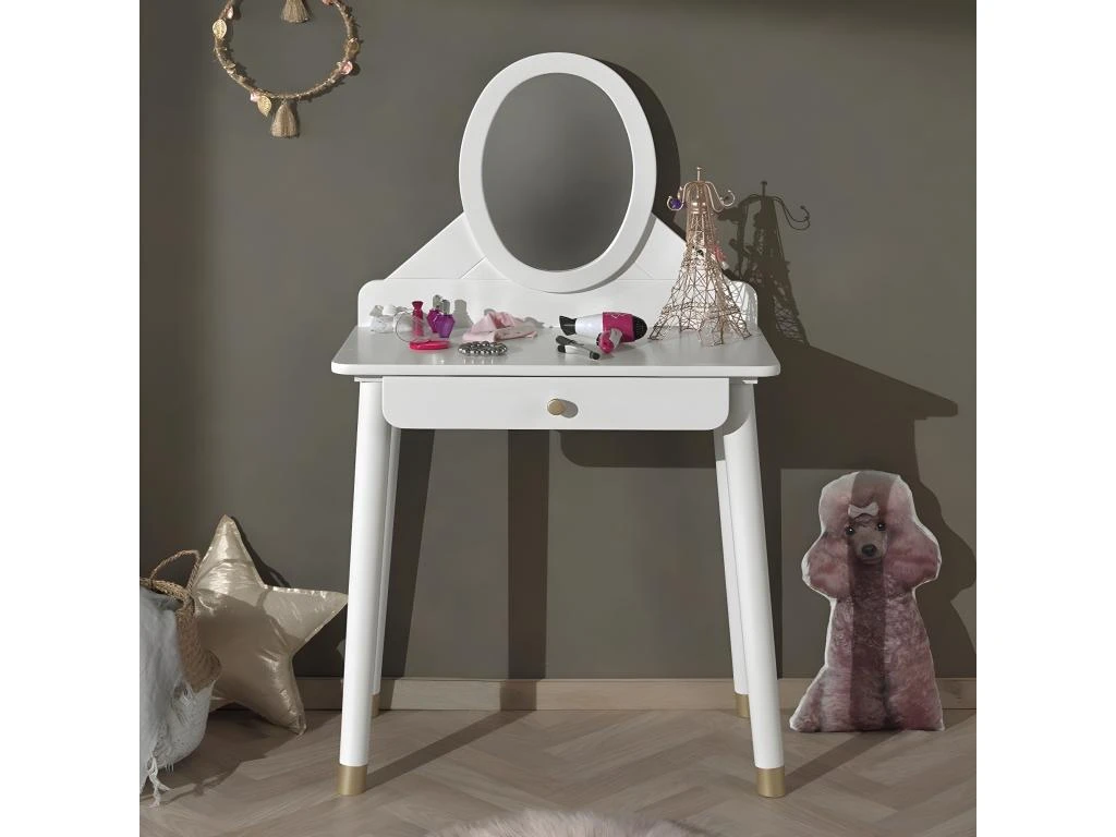 Coiffeuse 1 Tiroir Blanche, pieds et poignée Gold, de la gamme Tiny White.
