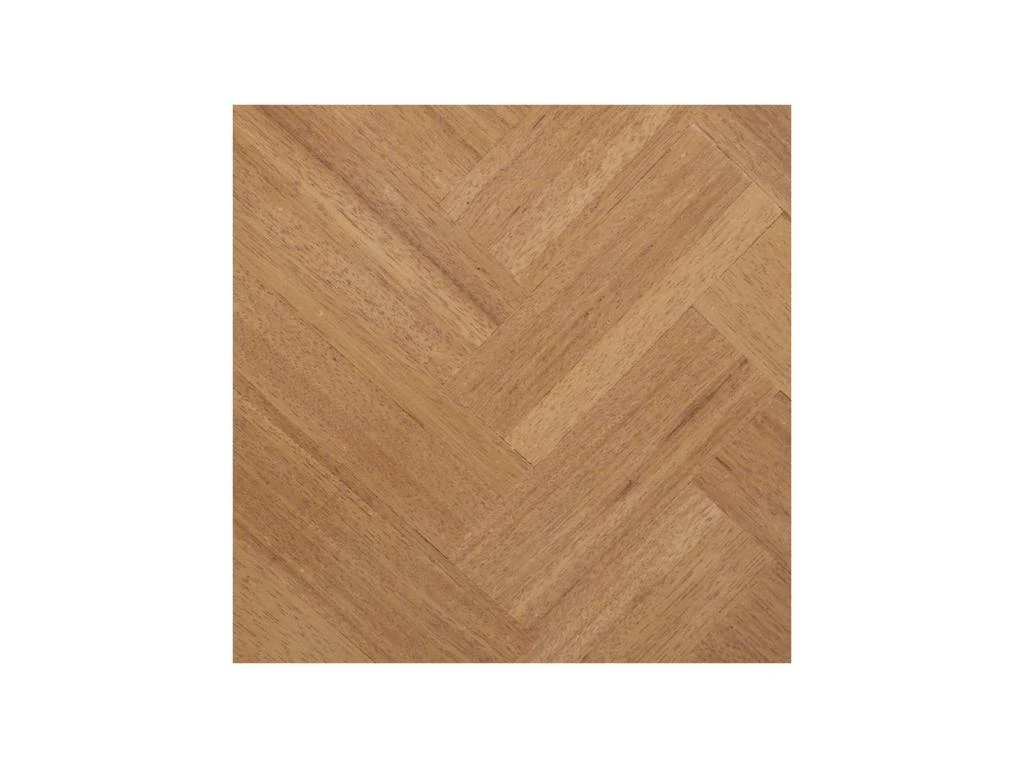 Focus sur le panneau de porte façon parquet à chevrons qui confère à ce meuble une qualité perçue réellement valorisante.