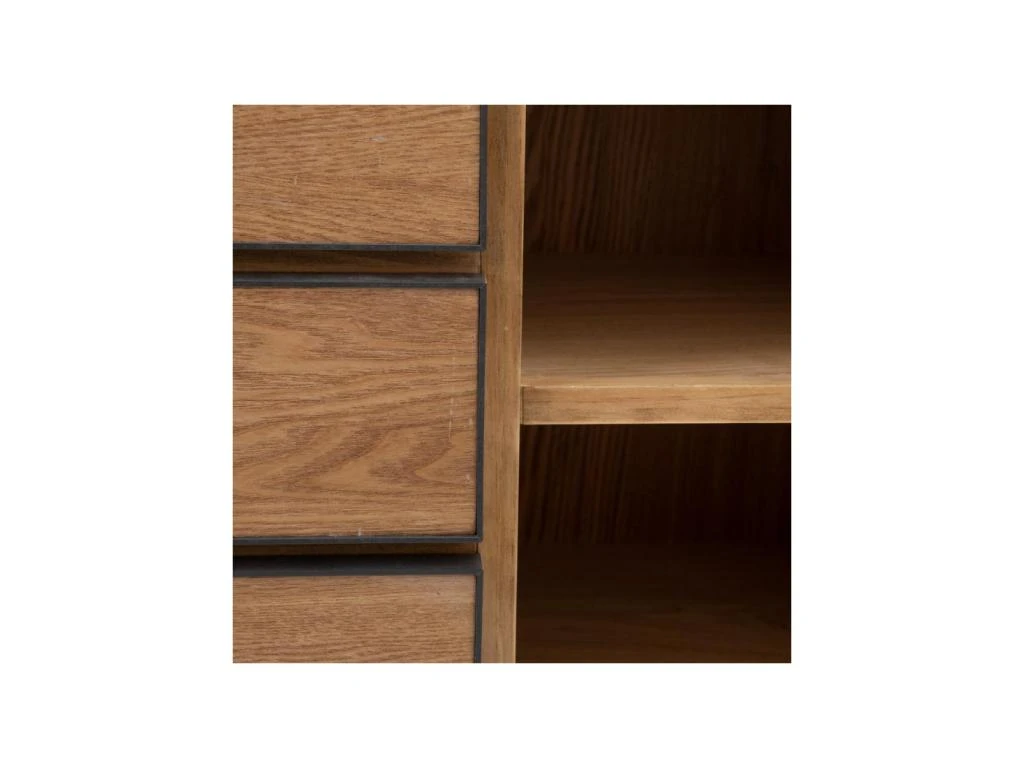 Chaleur et beauté du veinage du bois de Frêne pour ce vaisselier 1 porte 3 tiroirs.
