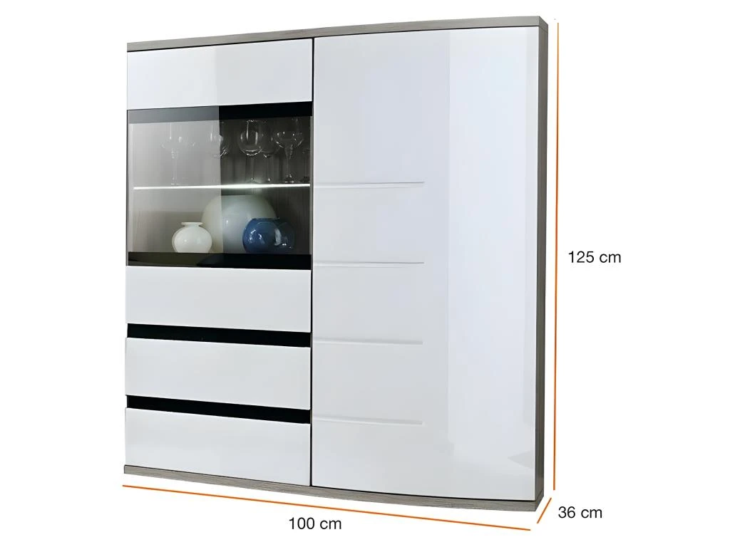 – CARACTĂRISTIQUES : Ăclairages LED et Ă©tagĂšre en verre derriĂšre les portes vitrĂ©es. PrĂ©sence du systĂšme « Pousser pour ouvrir » sur les portes. PoignĂ©es incrustĂ©es dans les portes.